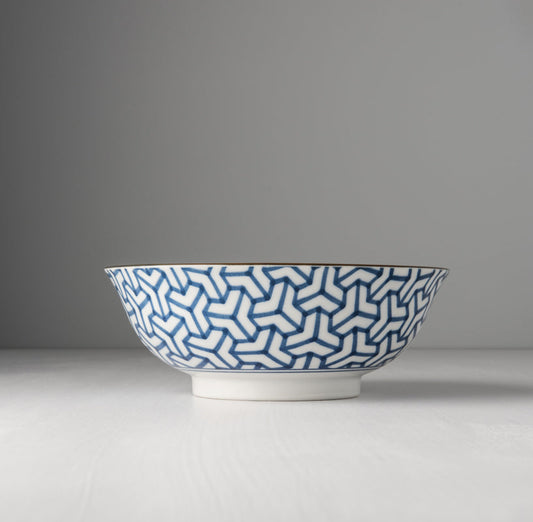 Bowl 19cm Indigo Ikat Hexagon Flower Design