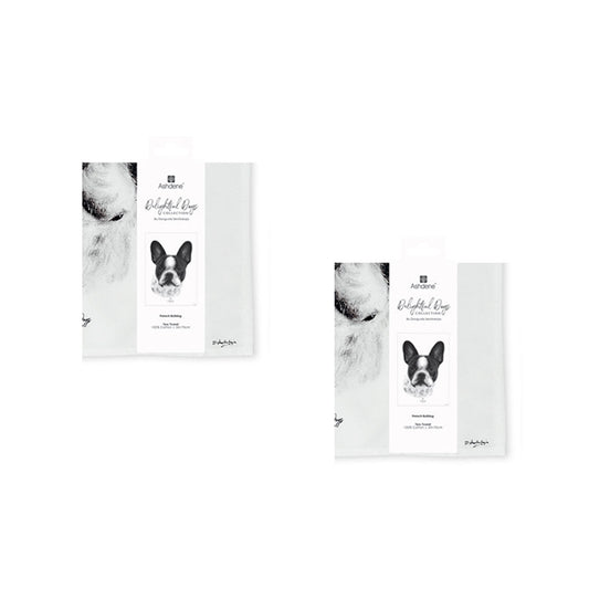 Set of 2 Delightful Dogs Cotton Kitchen Tea Towels 50 x 70 cm French Bulldog