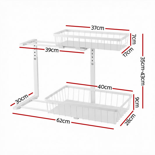 Artiss Under Sink Organizer 2 Tier Pull Out Drawer with Removable Baskets & Divider
