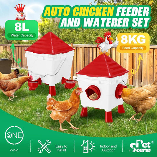 CARLA HOME Automatic Chicken Feeder Waterer Set with 8KG Food 7L Water Capacity for Coop, Chickens, Ducks, Quails (Red)
