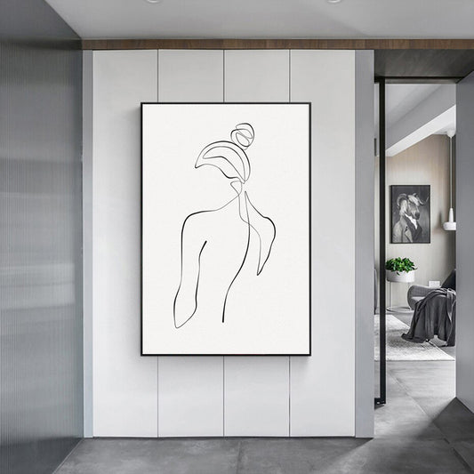 Wall Art 50cmx70cm Woman Black Line Art Black Frame Canvas